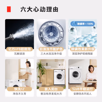 - 高效洗净:采用 UFB 超微泡技术,产生大量纳米级气泡,加速瓦解顽固污渍,提升洗净效率,减少洗涤剂残留,让衣物更健康1.