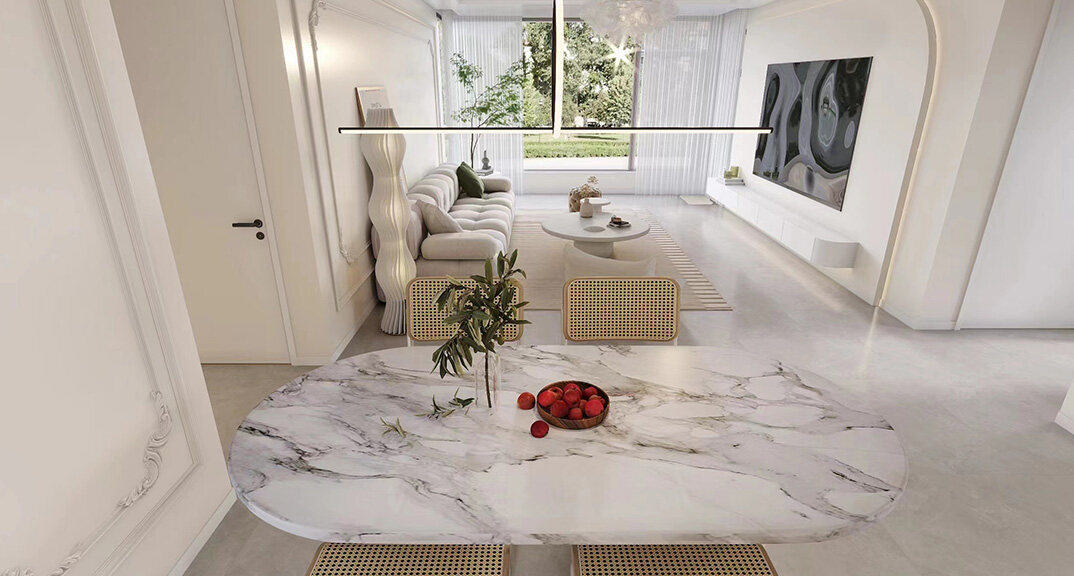 餐厅和客厅有一个良好的交互性和采光通风关系。空间泛泛流淌着和煦自然的东方雅韵,令人静坐畅谈时,得以由心的感知、自在的享受。卧室温暖的中性色调与木质感相得益彰,演绎可触摸的空间温度。蓝色艺术画,与仿佛清波漾开的地毯气质相映。运用湖光蓝调点染空间的清新气质。